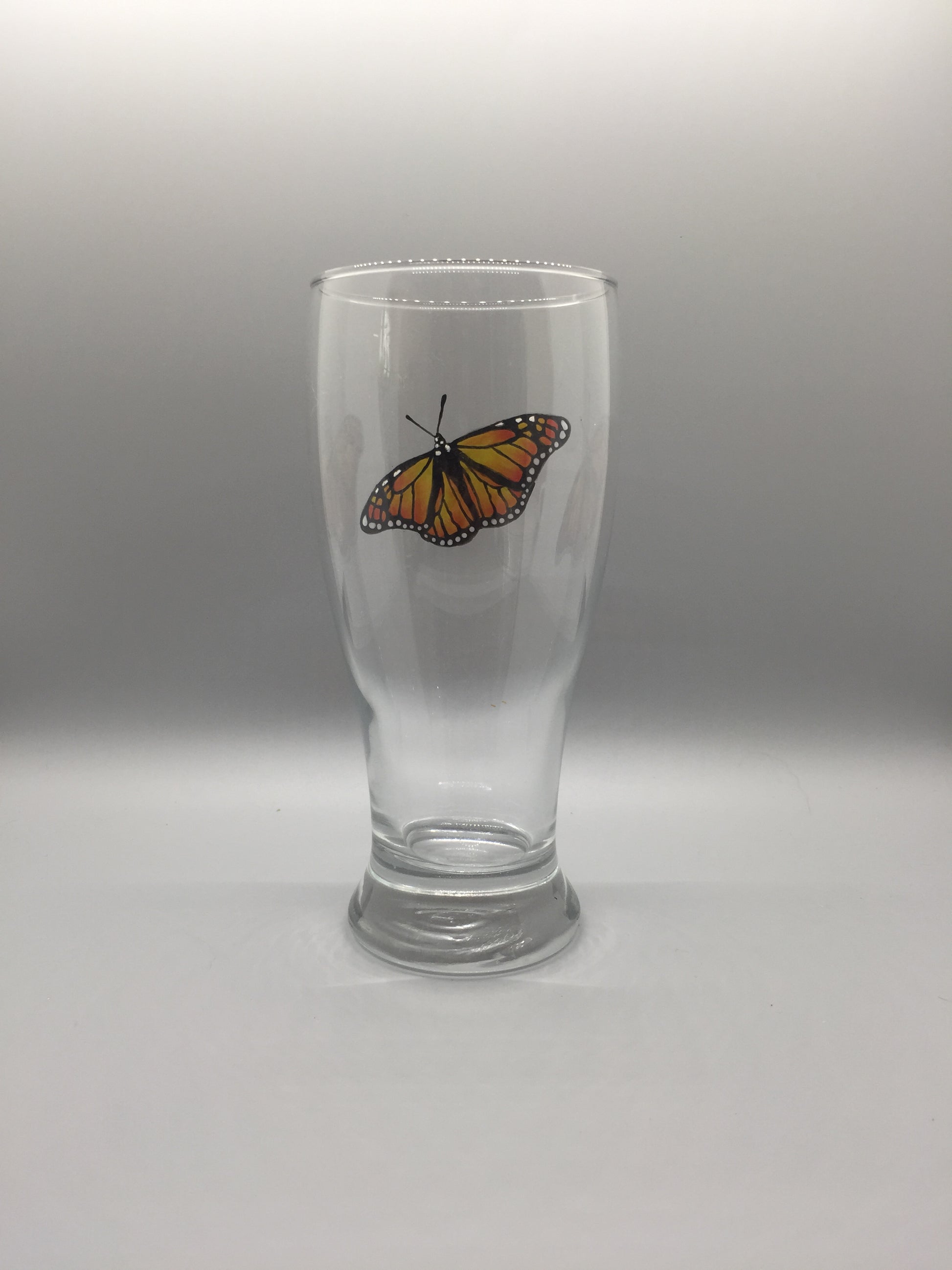 Beautiful Monarch butterfly flutters on this glass, making this a perfect glass to hold your favorite beverage on those beautiful Summer evenings.